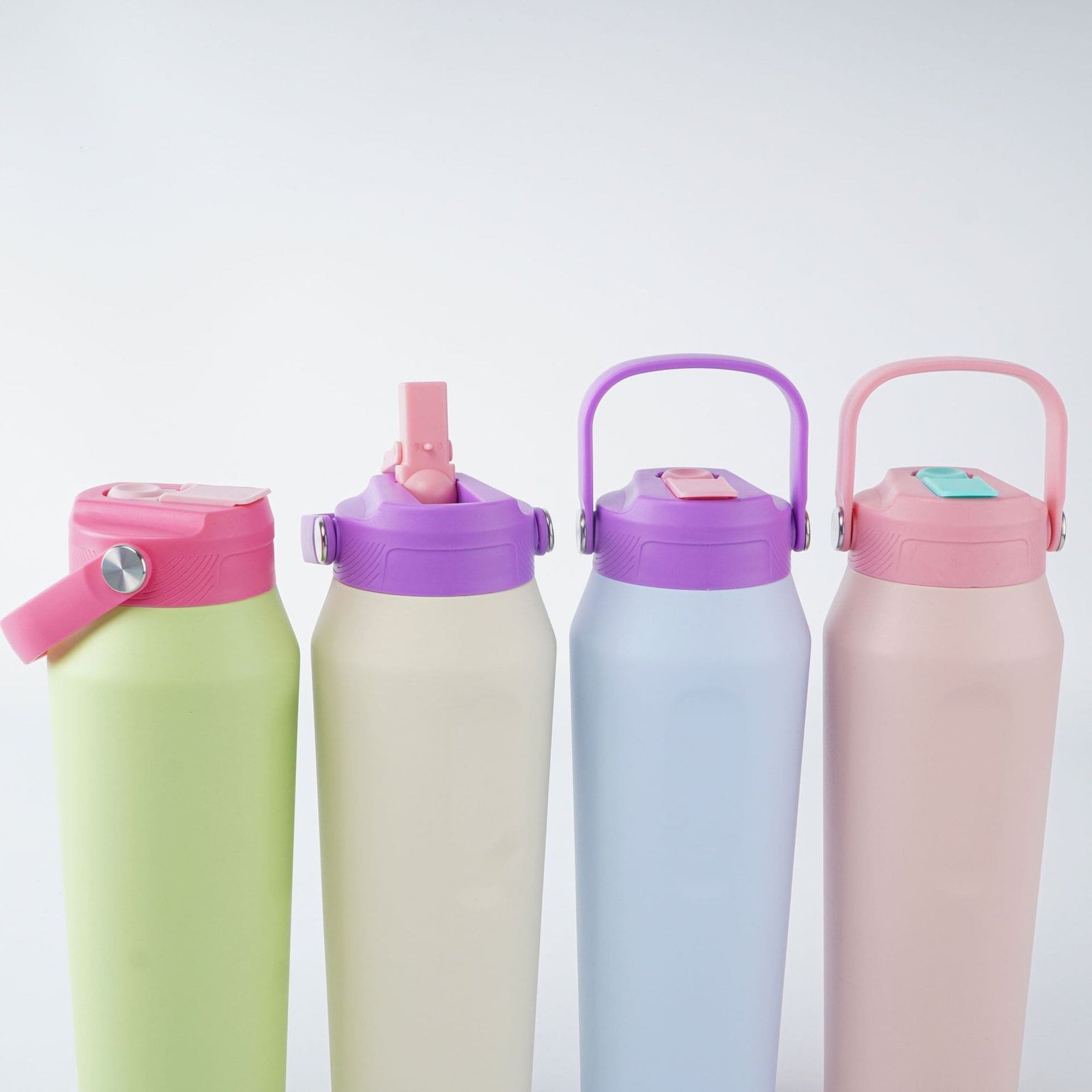 WATER BOTTLE WITH STRAW AND LEAKPROOF LIDS: Our sports water bottle is equipped with different lids to choose: 1 flip-up straw lid, 1 easy-twist spout lid and 1 portable handle lid. All caps allow for easy one-handed or hands-free sipping when you are busy or on-the-go